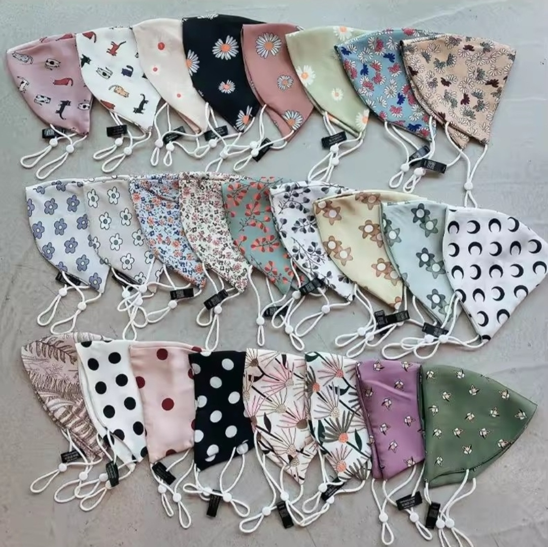 Seidenmasken mit Muster (Typ A2) aus Maulbeer-Seide ohne Filtertasche / leichte- & atmungsaktive Masken ohne Nasenbügel / von Hand waschbar bei 30° Celsius.